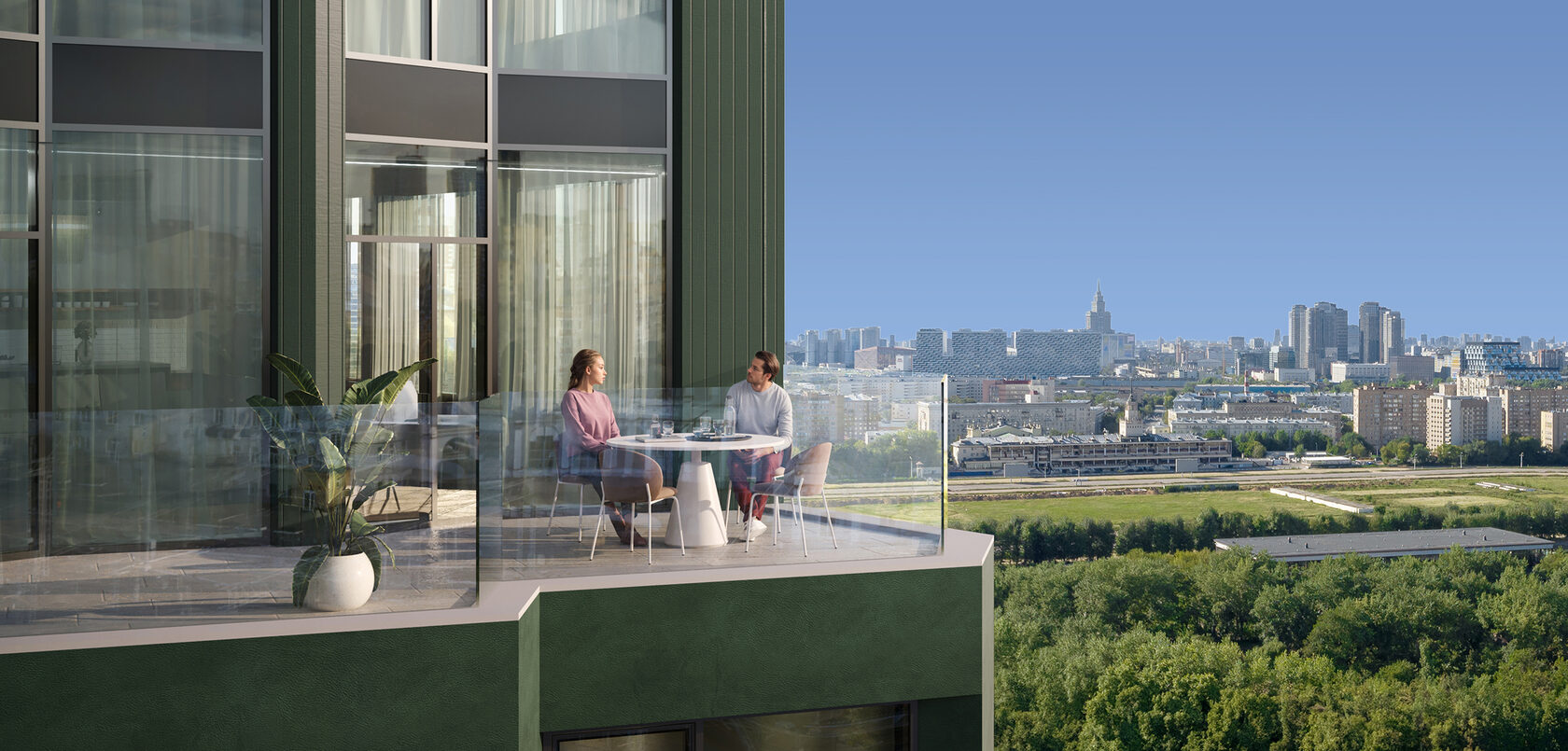 У каждого дома — своя концепция лобби. В одном — клубная гостиная, в другом — ресепшн, перетекающий в барную стойку. Но в каждом — мягкие зоны ожидания, простор и панорамное остекление. А торговая галерея — по соседству.